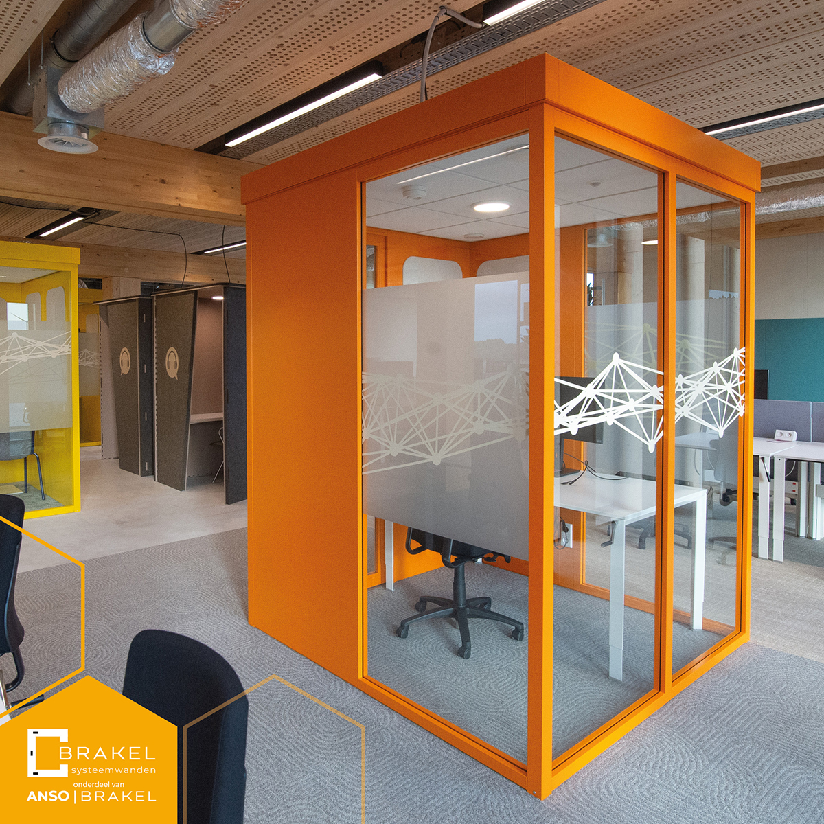 Brakel Qubes zijn stand-alone akoestische kantoor ruimten waarin bijvoorbeeld een vergadering plaats kan vinden, gewerkt kan worden in opperste concentratie en/of telefoongesprekken kunnen worden gevoerd, zonder daarbij gestoord te worden óf andere collega’s te storen.